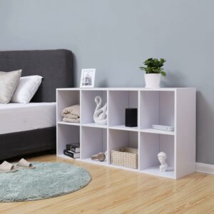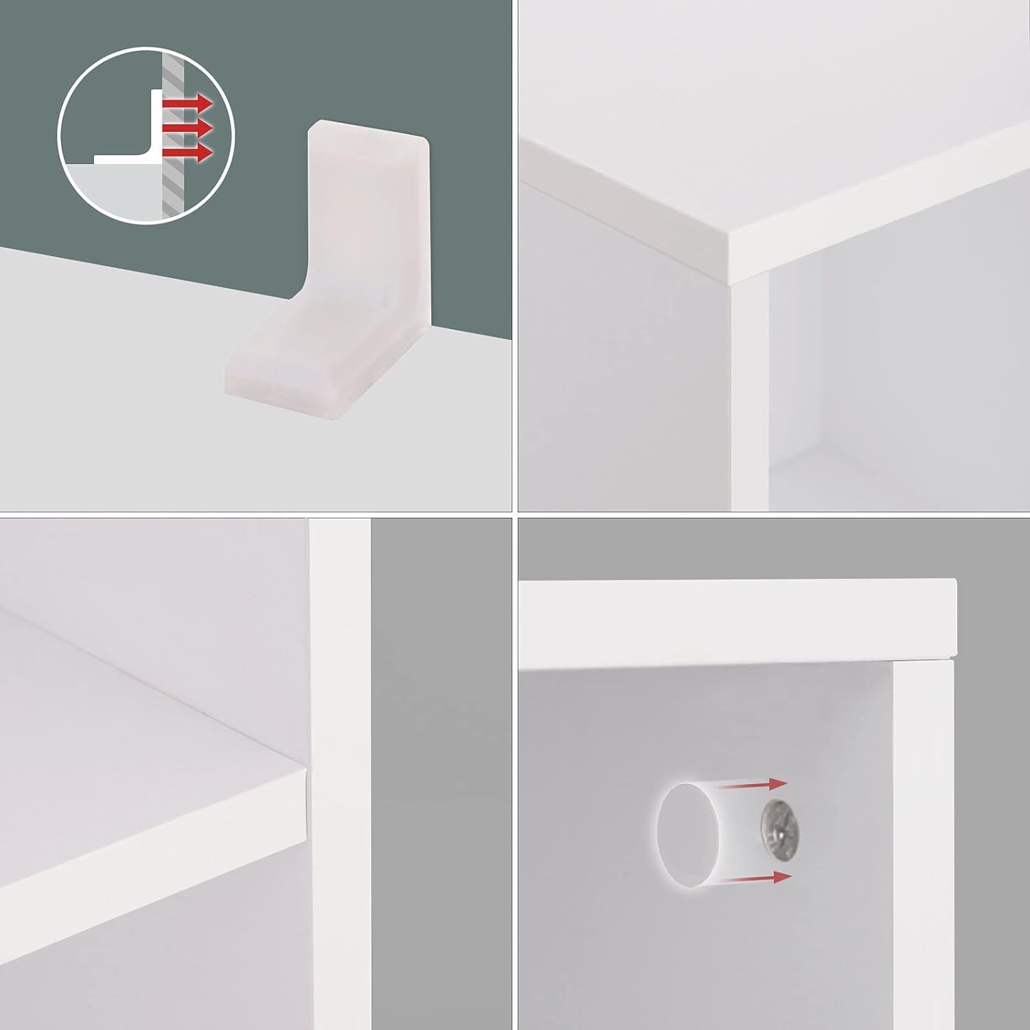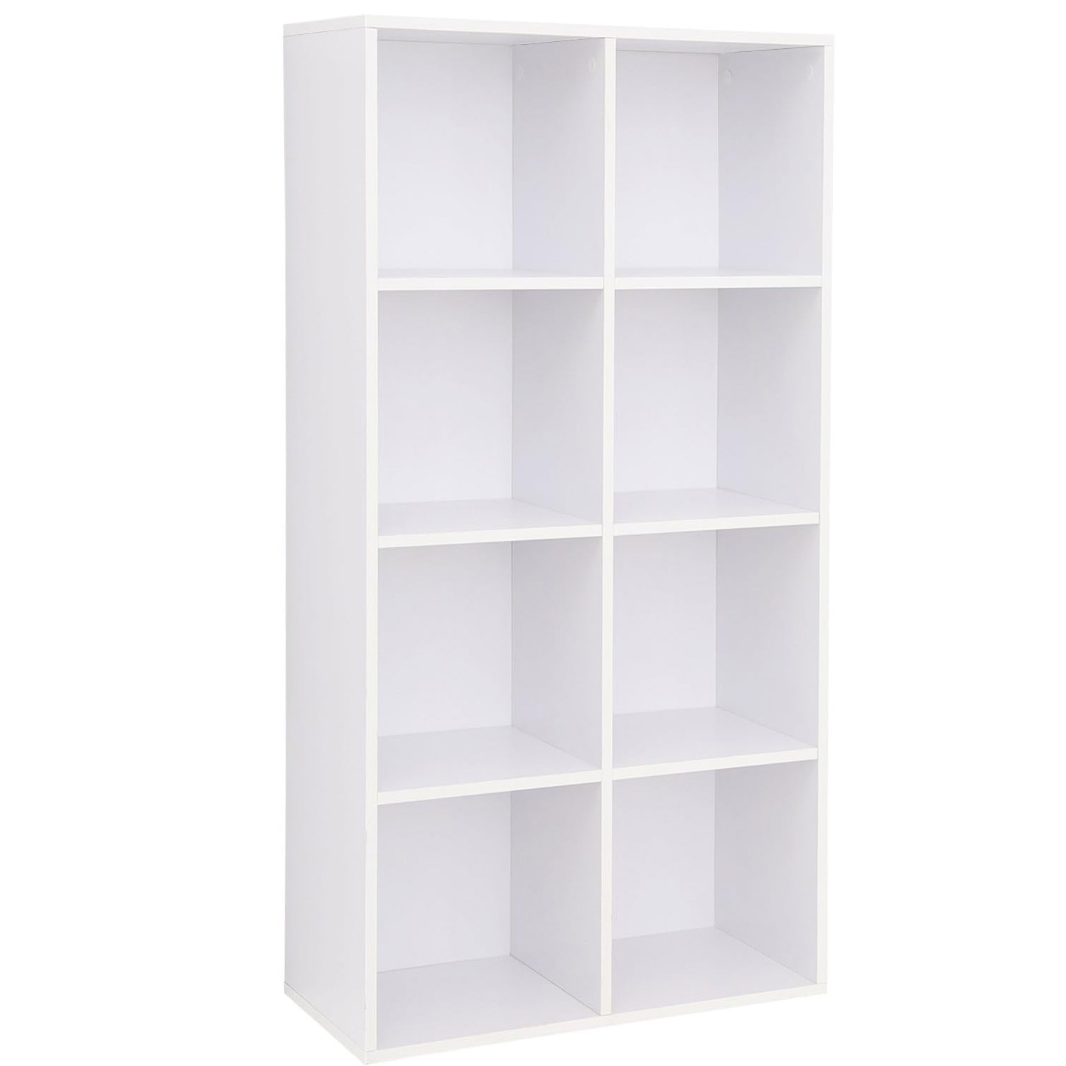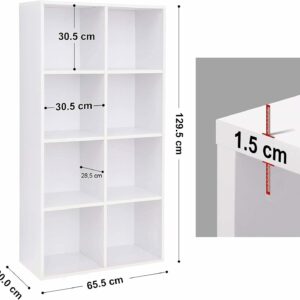 Pentru iubitorii de carti cu gust: nu sacrifica stilul atunci cand adaugi spatiu de stocare in casa ta; aceasta biblioteca moderna cu finisaj alb (65,5 x 30 x 129,5 cm) ofera 8 cuburi de depozitare deschise pentru colectiile dvs. de carti si viniluri in 25,4 cm (10″).