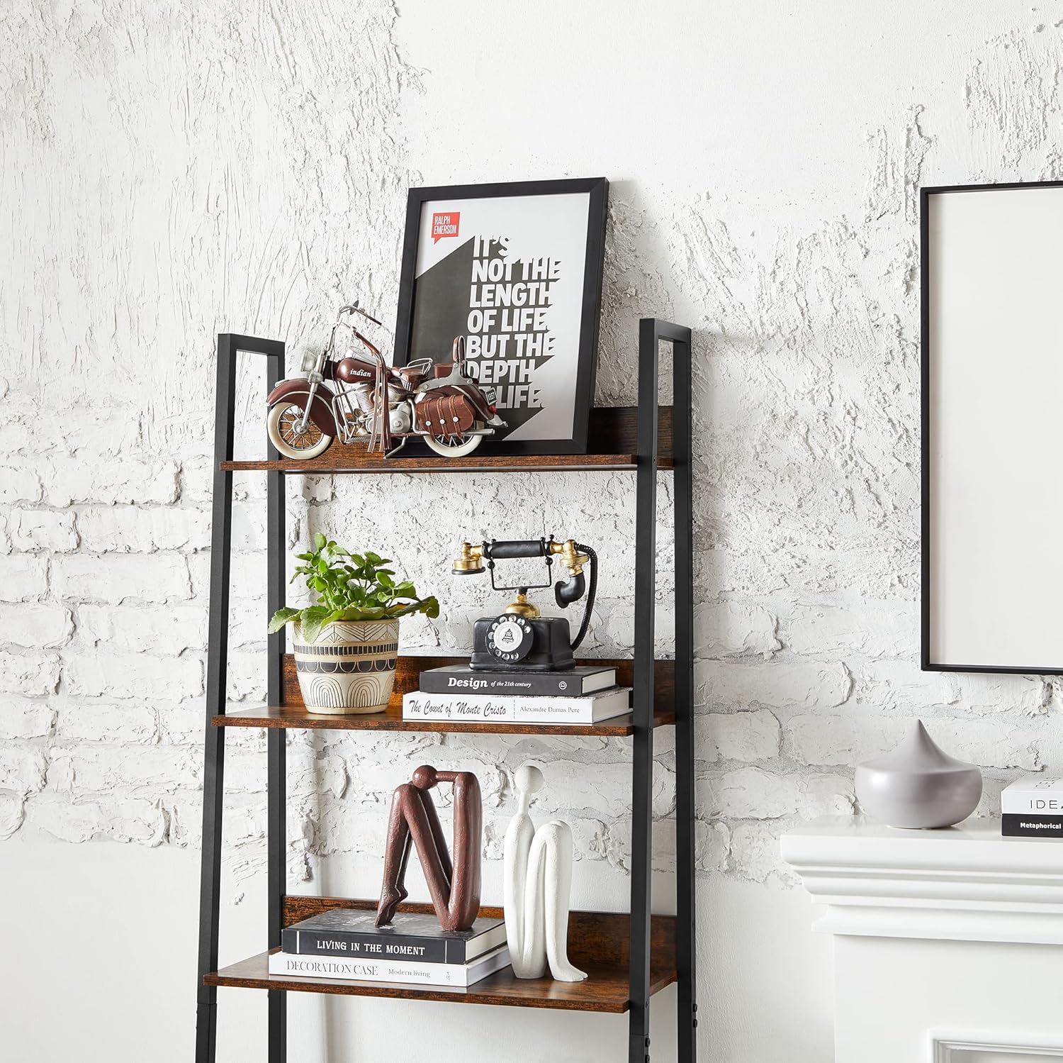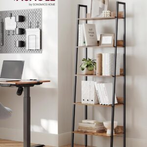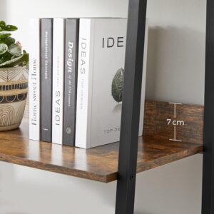 VASAGLE Létras típusú könyvespolc, 5 polcos acélvázas, ipari stílusú, 60x30x170 cm, barna