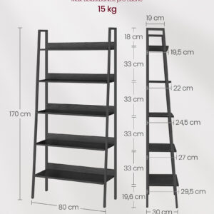 Raft ingust pentru spatii mici: Aceasta biblioteca ocupa doar 30 x 80 cm de spatiu pe podea si valorifica la maximum spatiul vertical cu inaltimea sa de 170 cm inaltime si cele 5 rafturi. Ez a helytakarékos létrapolc kis helyeken varázslatként működik.