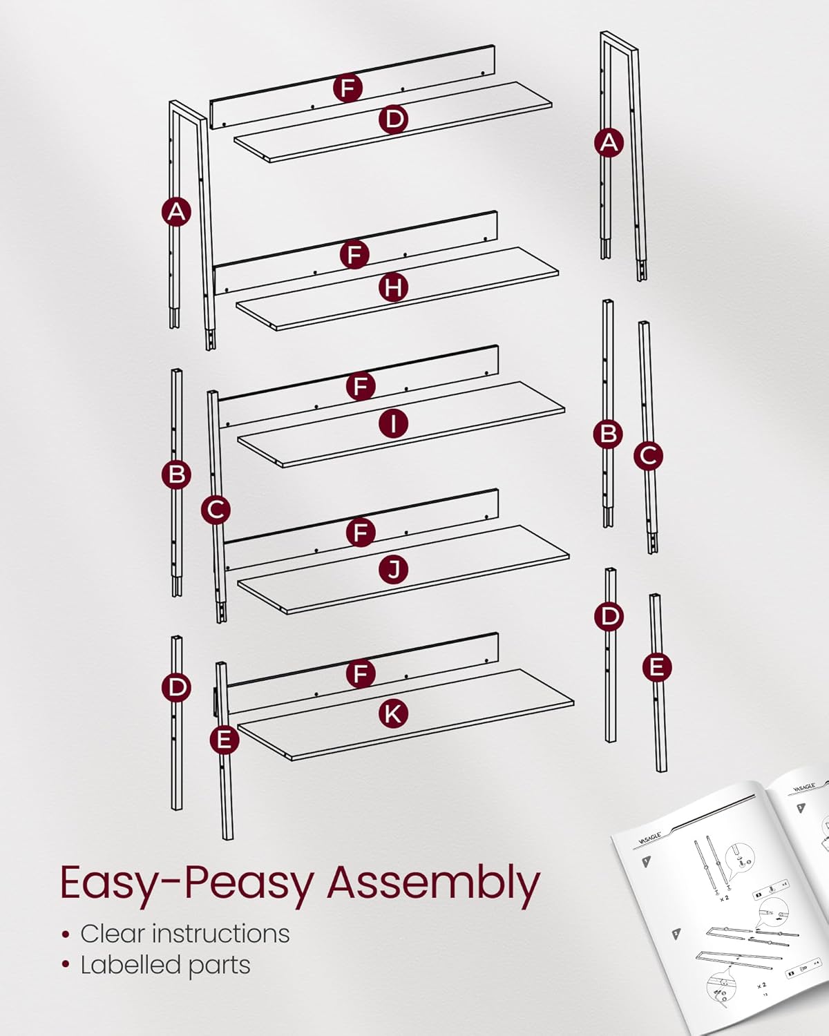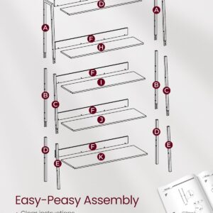 Usor de asamblat: Instructiunile ilustrate si usor de urmat si piesele numerotate va permit sa asamblati cu usurinta acest raft ingust de podea si perete.