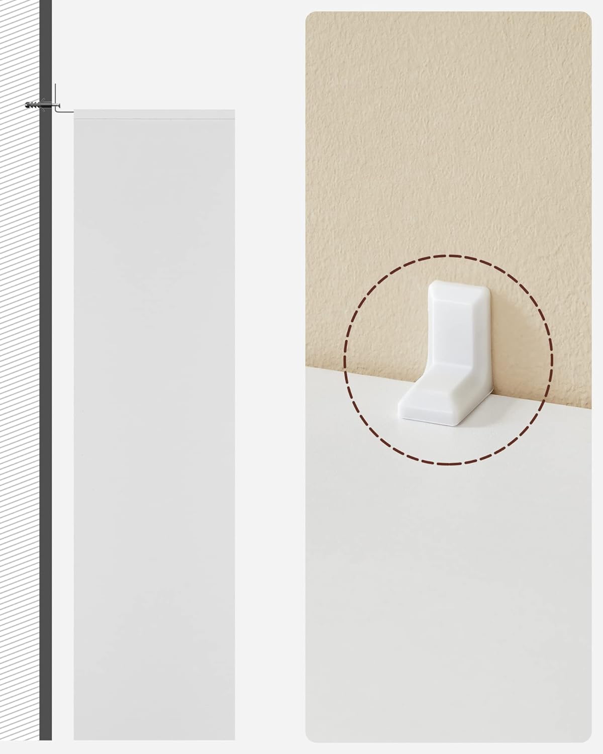 A csavarlyukak kívülről láthatatlanok; a polc alsó párnákat tartalmaz, amelyek megvédik a padlót a karcolásoktól.