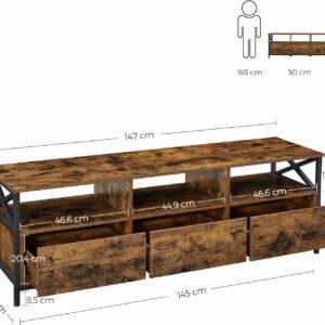 Acest suport TV de 40 x 147 x 50 cm. Cu 3 sertare pentru depozitare inchisa, alaturi de 3 rafturi deschise pentru a expune piese mici de decor, acest suport TV este perfect pentru camera ta de zi.