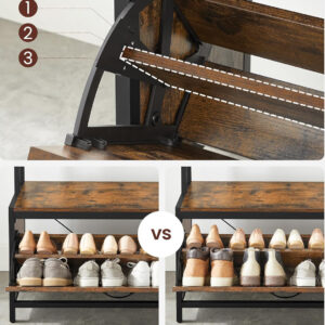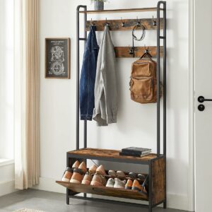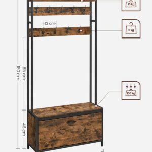 VASAGLE Cipőtartó cipőtároló résszel, acélvázas, ipari stílusú, 32x85x180cm, rusztikus barna