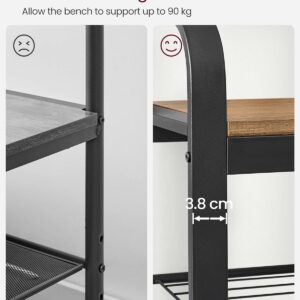 [Robust si stabil] Cadrul robust din otel, picioarele cu latimea de 3,8 cm si placile aglomerate de calitate creeaza acest suport robust pentru haine, a carui banca de depozitare a pantofilor suporta pana la 90 kg, pentru ca dvs. sa va asezati linistit; kitul anti-inclinare contribuie la stabilitatea generala