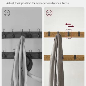 [9 carlige detasabile de calitate] Acest suport de haine pentru hol este prevazut cu 9 carlige detasabile pe 2 randuri, ajutandu-va sa agatati articole de diferite dimensiuni. Fabricate din metal robust si rezistent la rugina, sunt pentru utilizare pe termen lung