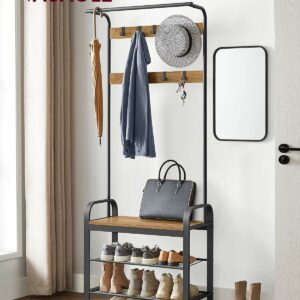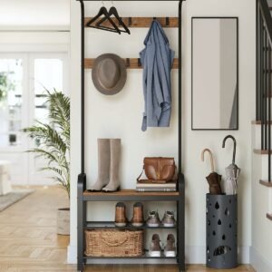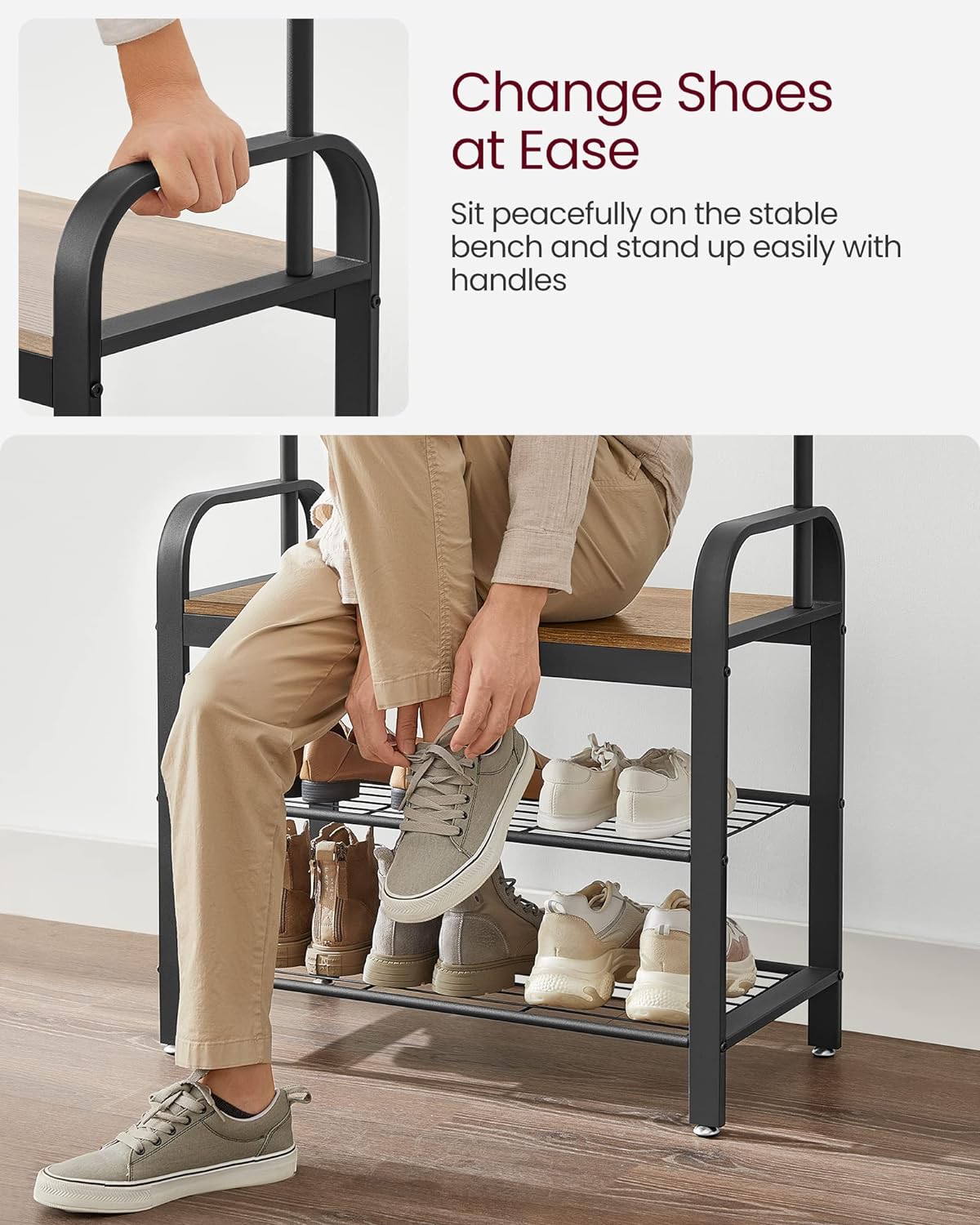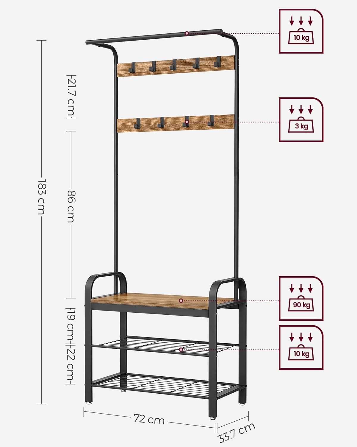 4 in 1. [Raft de haine 4 in 1] Aceasta unitate de depozitare pentru hol combina o bara de agatat, o banca pentru pantofi, un suport pentru pantofi si carlige pentru haine pentru a satisface diversele dvs. nevoi – de la agatarea hainelor, organizarea pantofilor si asezarea confortabila pentru a va schimba pantofii