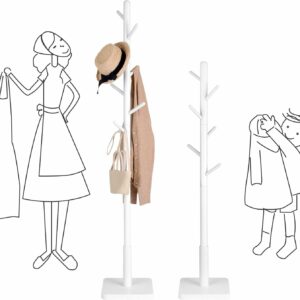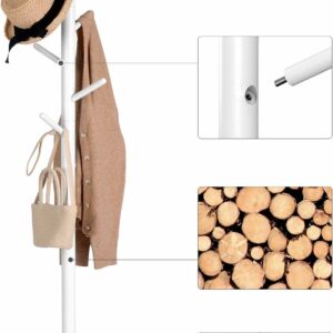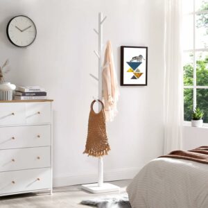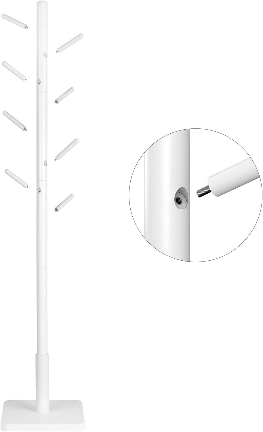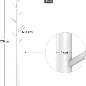 VASAGLE Cuier pentru haine, din lemn masiv, tip pom, cu 8 carlige, baza patrata, 175cm, alb