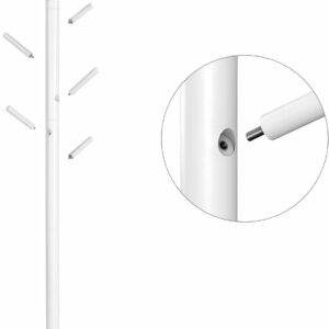 Suportul pentru haine are un stalp principal solid cu diametrul de 4 cm, unit ferm cu ramurile. Sustinut de o baza patrata stabila, acesta sta ferm si sustine cu incredere pana la 24 kg in total, gazduind 3 kg per carlig.