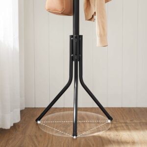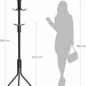 Stabil szerkezetével, gyönyörű megjelenésével és kis méreteivel ideális megoldást jelent minden helyiségbe. A három láb mindegyik vége műanyag csővel van becsomagolva, hogy elkerülje a felületek megkarcolását. Mind a 4 felső horog fa golyókkal van rögzítve, hogy elkerülje a ruhák sérülését használat közben.