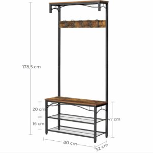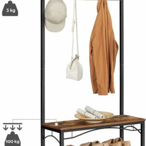 Minden, amire szüksége van: Miután a nap végén hazatért, akassza fel kabátját, sapkáját és sálját a tetején lévő 5 dupla kampóra, üljön le a padra, vegye le cipőjét, és tegye a 2 fémhálós tárolópolcra.