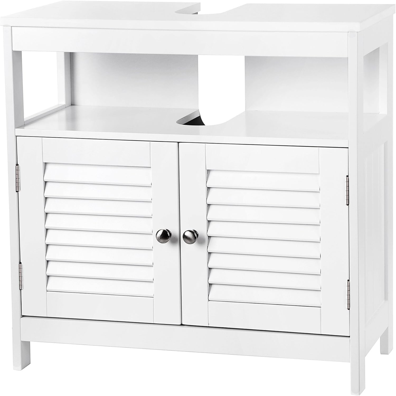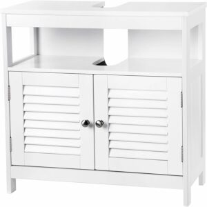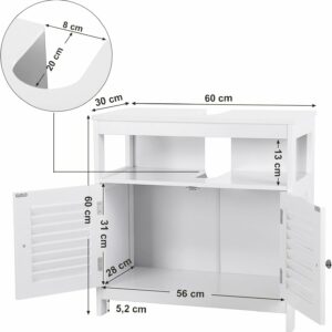 VASAGLE Fürdőszoba alsó szekrény, 2 ajtós, 2 rekeszes, fehér 60x60x30 cm, fehér