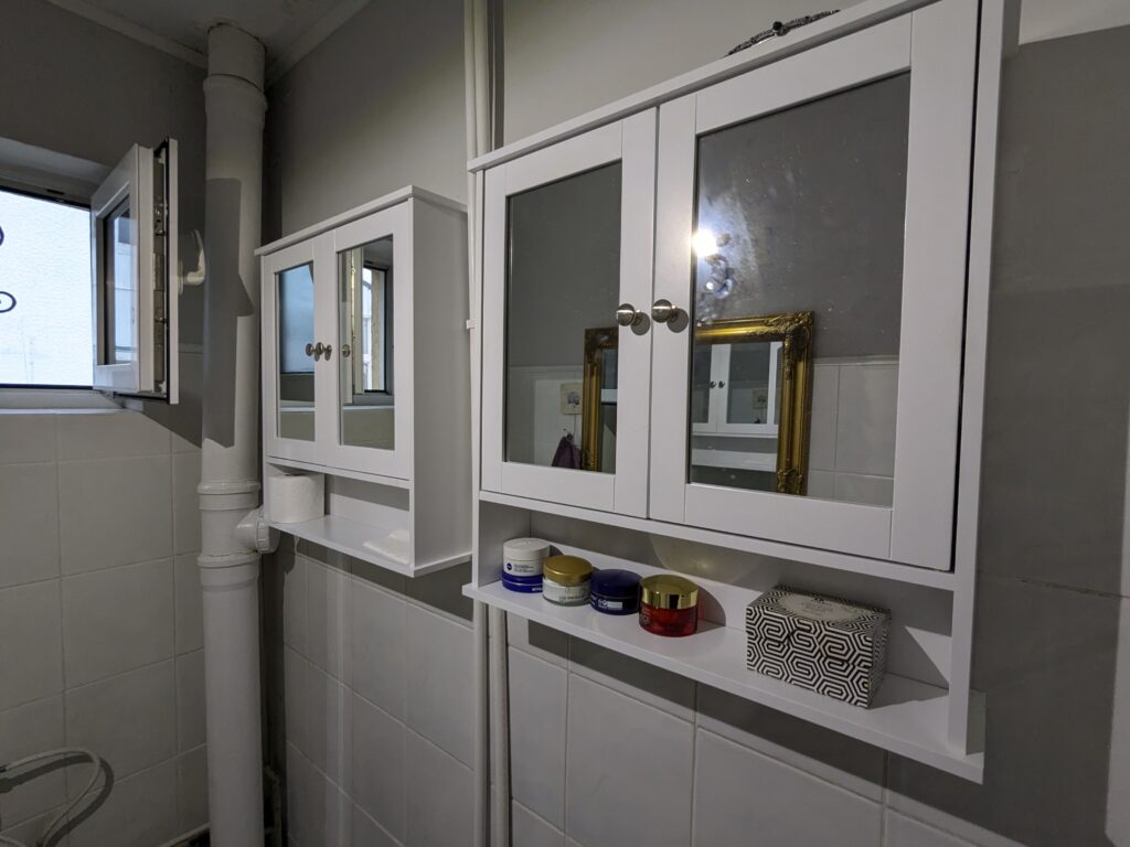 Állítható magasságú polc: Az ajtók mögött található egy polc, amely 3 magassági lehetőséget kínál. Minden lényeges, különböző magasságú fürdőszobai elem otthonra találhat itt