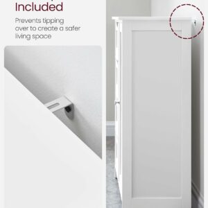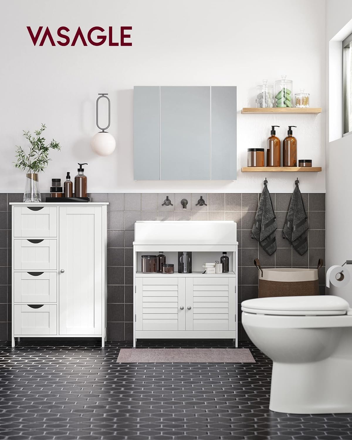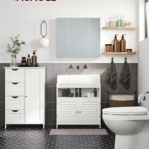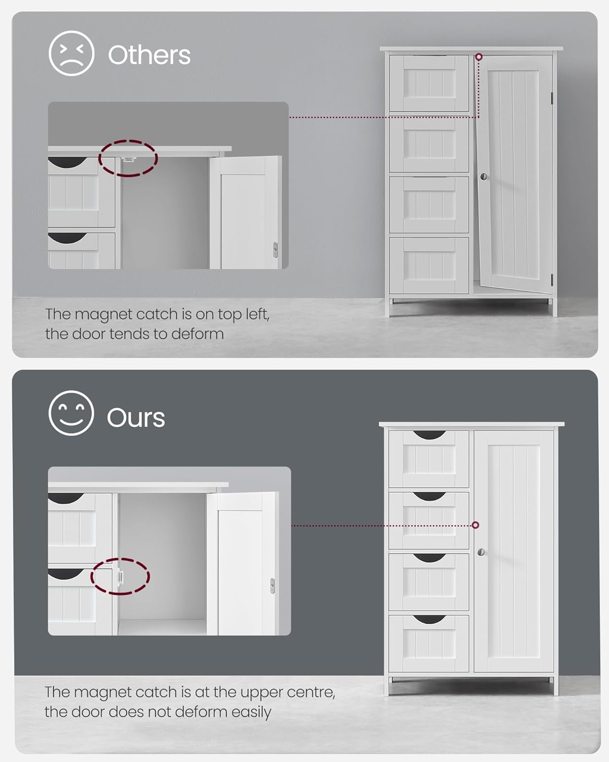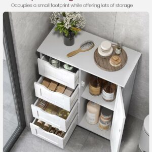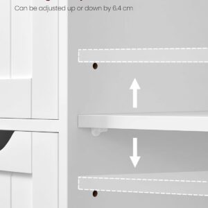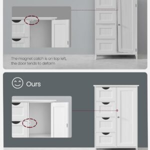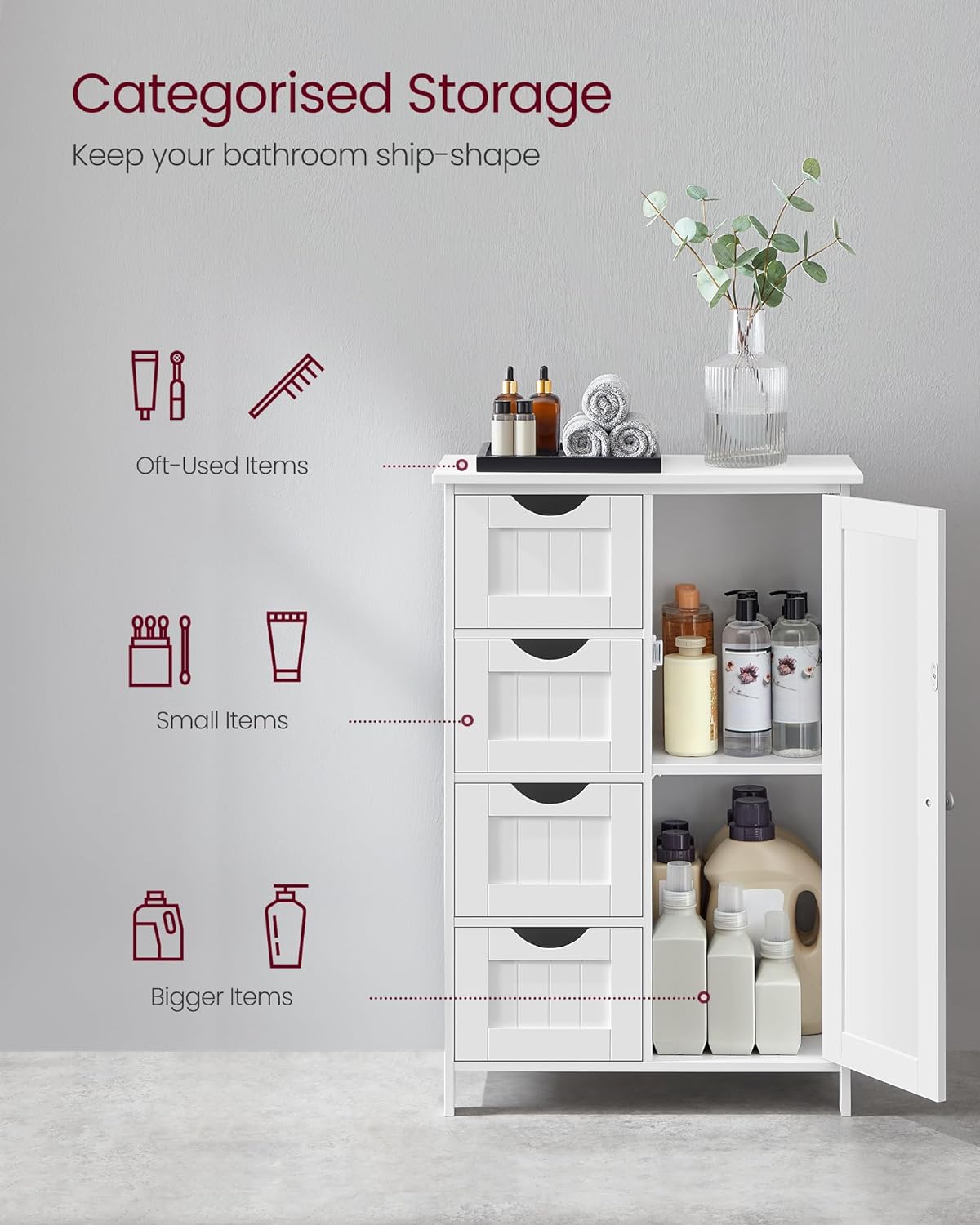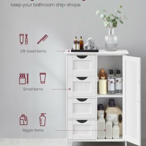 VASAGLE Fürdőszobai padlós tárolószekrény, fa, 4 fiókos, 1 ajtós, állítható polcok, 30x55x82 cm, fehér