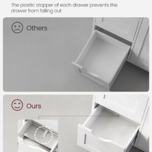 Gyönyörű kiegészítője bármely helyiségnek: Az elegáns fehér szín és az egyszerű kialakítás egy letisztult és elegáns tárolóegységet alkot, amely gyönyörűen illeszkedik otthoni dekorációjához, legyen az fürdőszoba, nappali vagy előszoba.