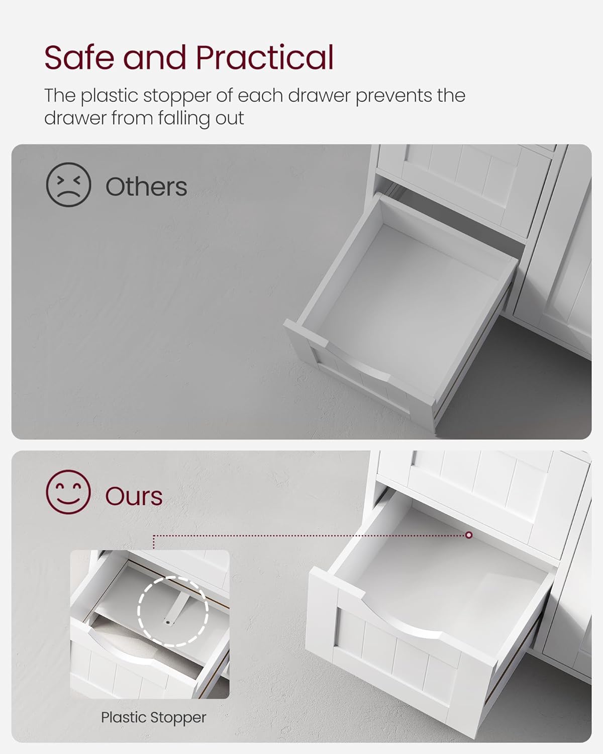 VASAGLE Fürdőszobai padlós tárolószekrény, fa, 4 fiókos, 1 ajtós, állítható polcok, 30x55x82 cm, fehér termékről 1 értékelés