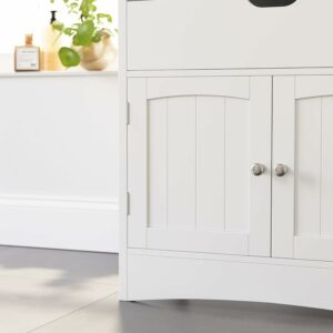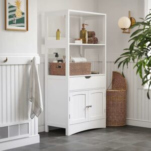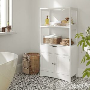 VASAGLE Fürdőszobai tárolószekrény fiókkal, 2 ajtóval és 2 polccal, 60x32x122 cm, fehér