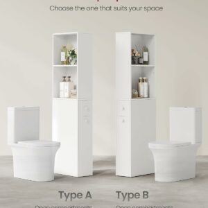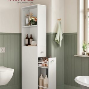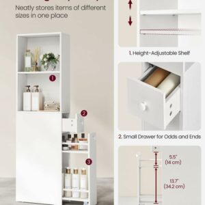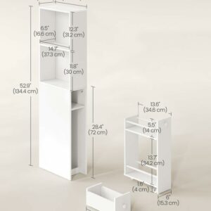 VASAGLE Dulap de depozitare pentru baie, pentru spatii inguste, cu sertare si raft reglabil, 40x18x134cm, alb