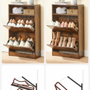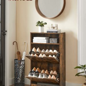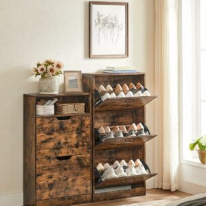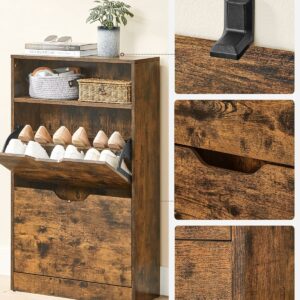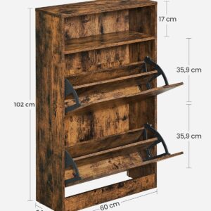 Mivel cipője tükrözi személyiségét, tartsa jó állapotban ebben a VASAGLE cipőtartóban, amely a rusztikus barnát a modern dizájnnal ötvözi. Ez a 2 füles cipőtartó 12 pár női vagy 8 pár férfi cipő számára biztosít elegendő helyet. A belső válaszfal eltávolítható a csizma és a magassarkú tárolására.