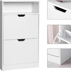 VASAGLE Cipős szekrény 3 összecsukható ajtóval, 8-12 párnak, 60x24x102 cm, fehér