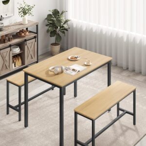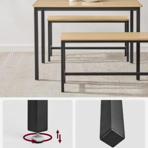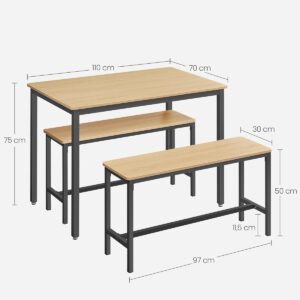 Ez a készlet egy 70 x 110 cm-es asztalból és 2 padból áll, elegendő helyet kínálva 4 fő befogadására, ideális családi vacsorához, gyors reggelihez vagy egy ital elfogyasztásához a barátokkal. A két 50 cm magas pad elrejthető a 75 cm magas asztal alá, így helyet takaríthat meg az asztal mögött, így ez az étkezőgarnitúra tökéletes megoldás a kis helyekre, a rendezettség megőrzésére.