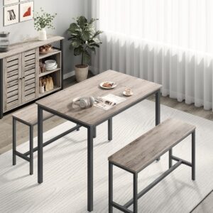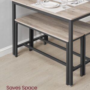 Ez a készlet egy 70 x 110 cm-es asztalból és 2 padból áll, elegendő helyet kínálva 4 fő befogadására, ideális családi vacsorához, gyors reggelihez vagy egy ital elfogyasztásához a barátokkal. A két 50 cm magas pad elrejthető a 75 cm magas asztal alá, így helyet takaríthat meg az asztal mögött, így ez az étkezőgarnitúra tökéletes megoldás a kis helyekre, a rendezettség megőrzésére.