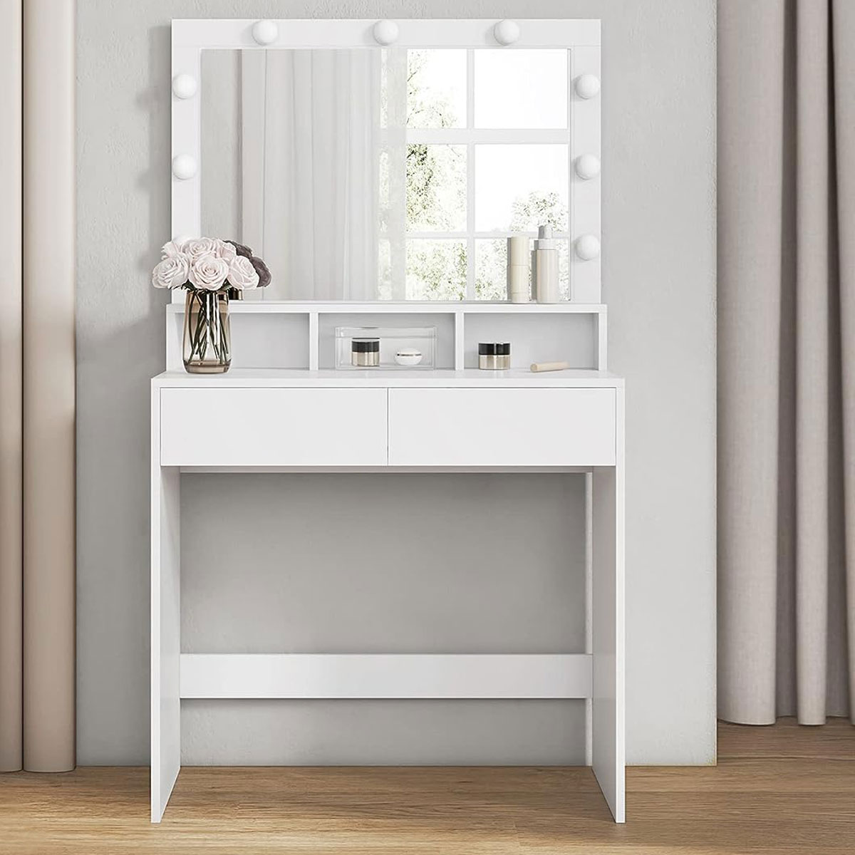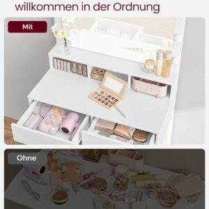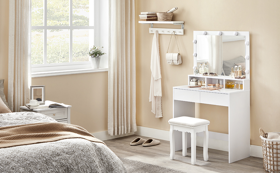 O mai buna organizare a produselor dvs. cosmetice: Cele 2 sertare mari si cele 3 compartimente deschise ale masutei de toaleta ofera suficient spatiu pentru machiajul dvs. si faciliteaza organizarea cosmeticelor dvs.