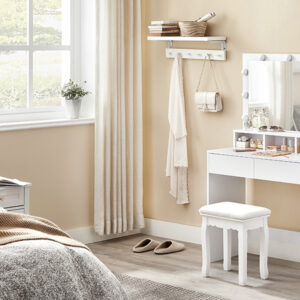 Se potriveste perfect: Datorita liniilor curate, a culorii albe si a aspectului modern, aceasta masa de toaleta se potriveste perfect in dormitorul dvs. Intr-un colt sau langa pat? Decizia va apartine.