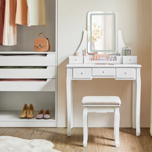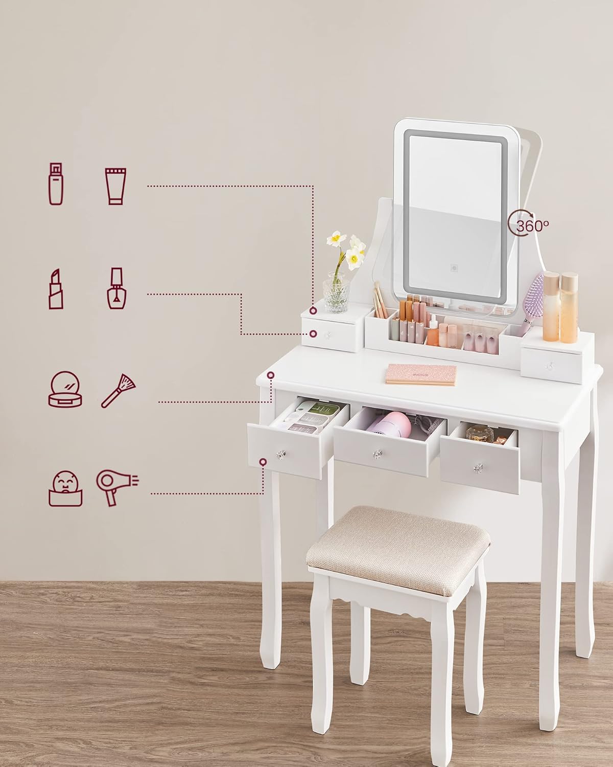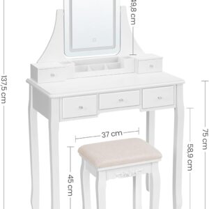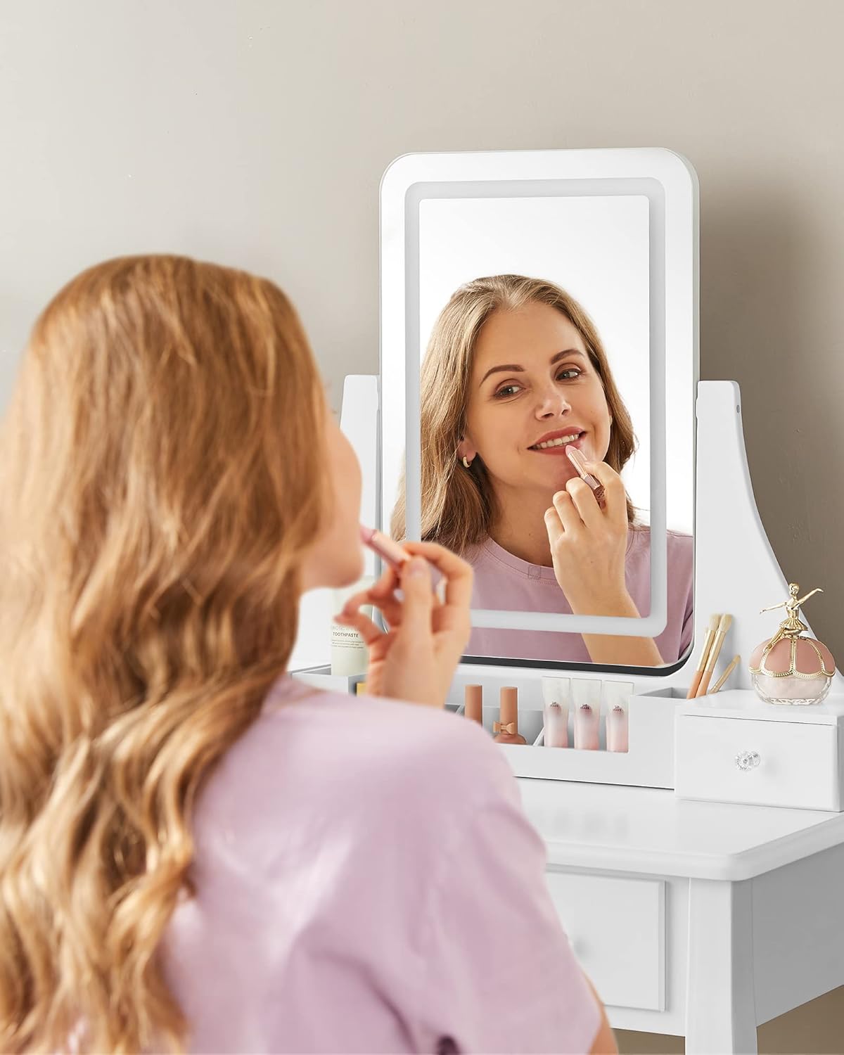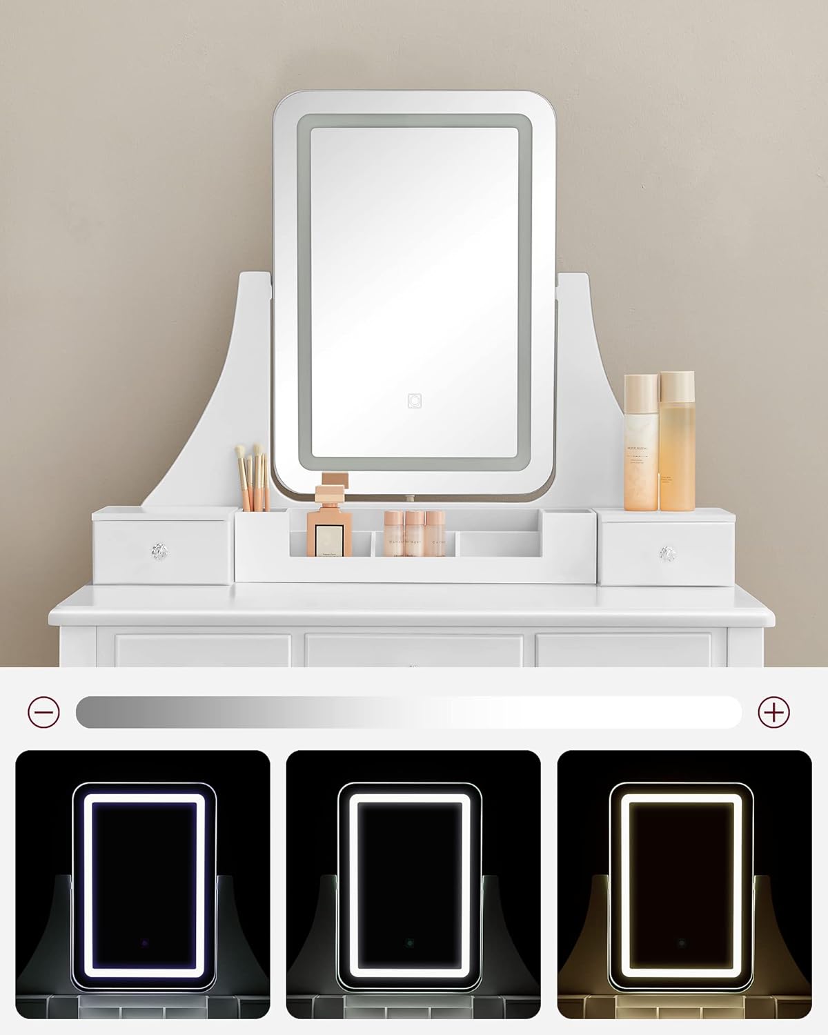 „VASAGLE fésülködő asztal székkel, 360°-ban elforgatható tükör, állítható LED világítás, 80x40x138 cm, fehér” értékelése elsőként
