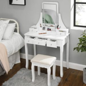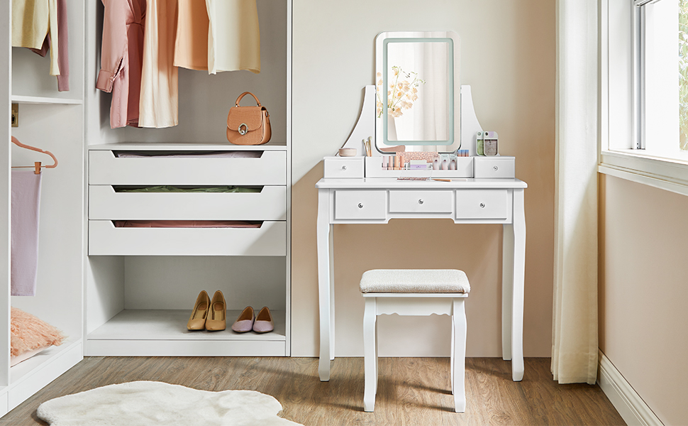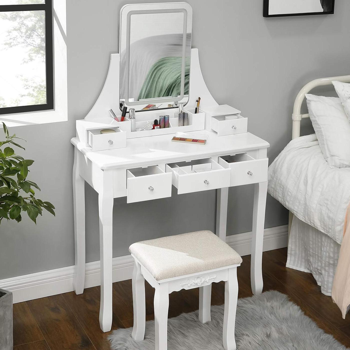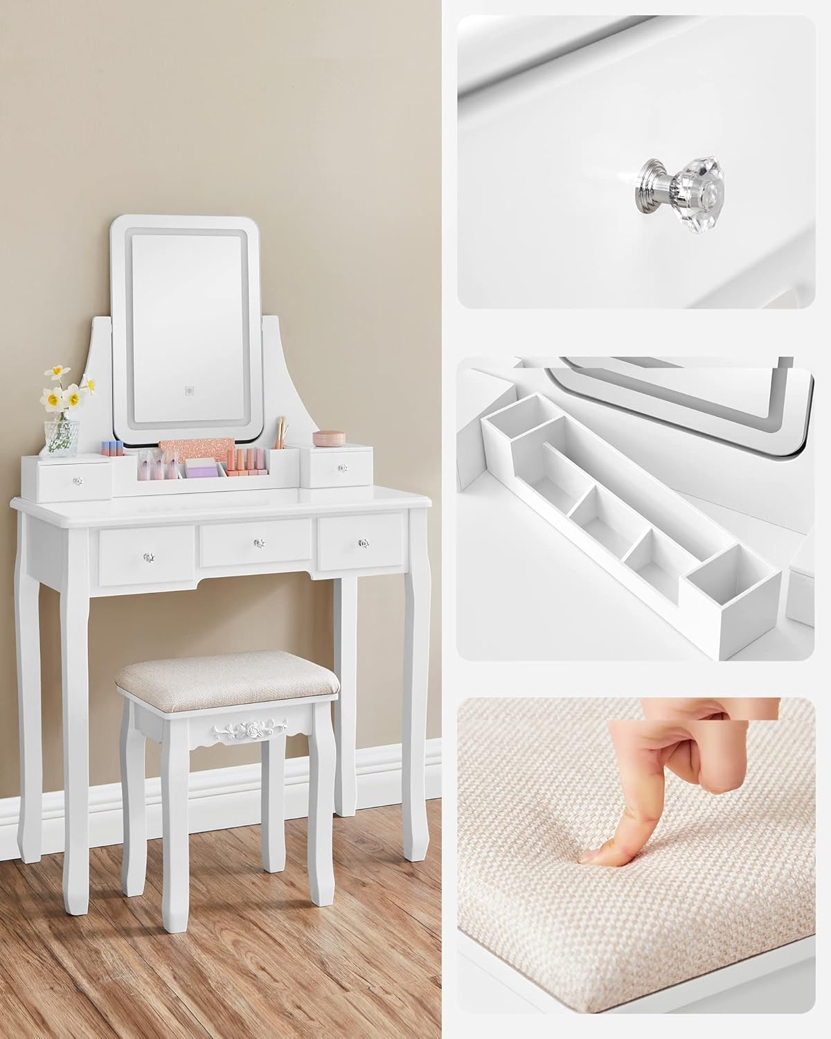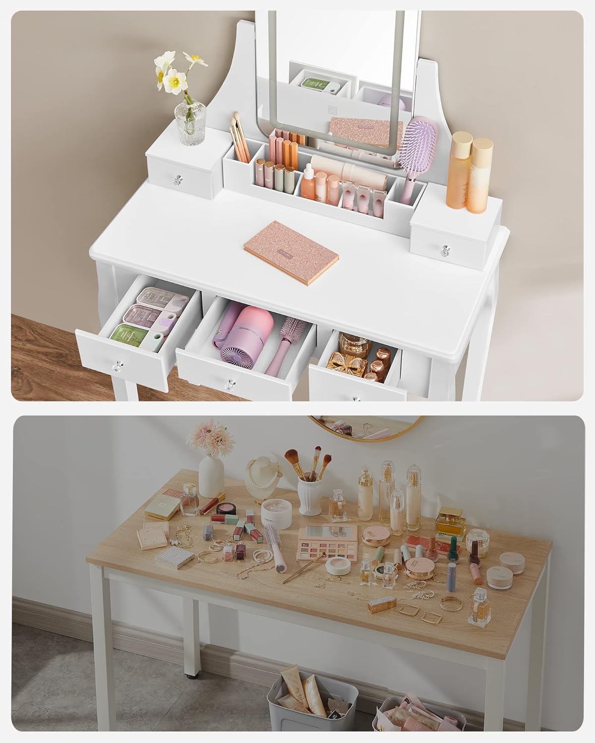 „VASAGLE fésülködő asztal székkel, 360°-ban elforgatható tükör, állítható LED világítás, 80x40x138 cm, fehér” értékelése elsőként