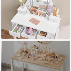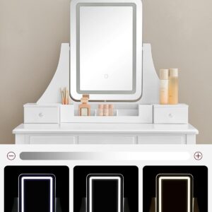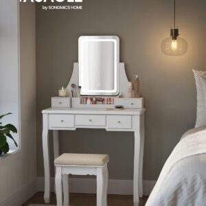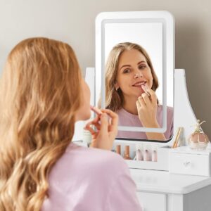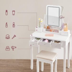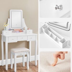 VASAGLE fésülködő asztal székkel, 360°-ban elforgatható tükör, állítható LED világítás, 80x40x138 cm, fehér