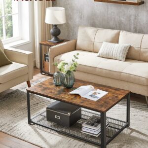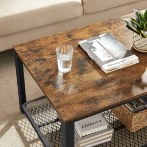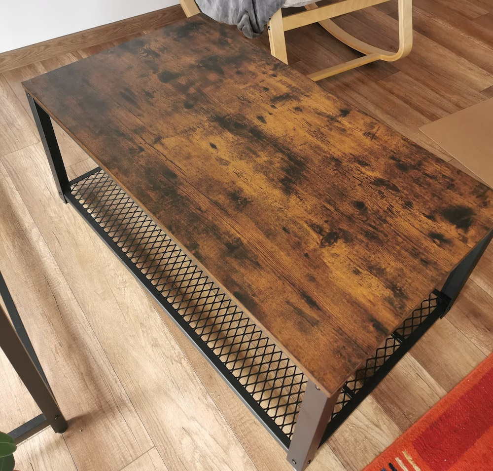 Ipari dizájn: A rusztikus barna felülettel, fekete acélkerettel és vonzó fémhálós díszítéssel ez az ipari hangulatú dohányzóasztal egy kis karaktert kölcsönöz nappalijának.