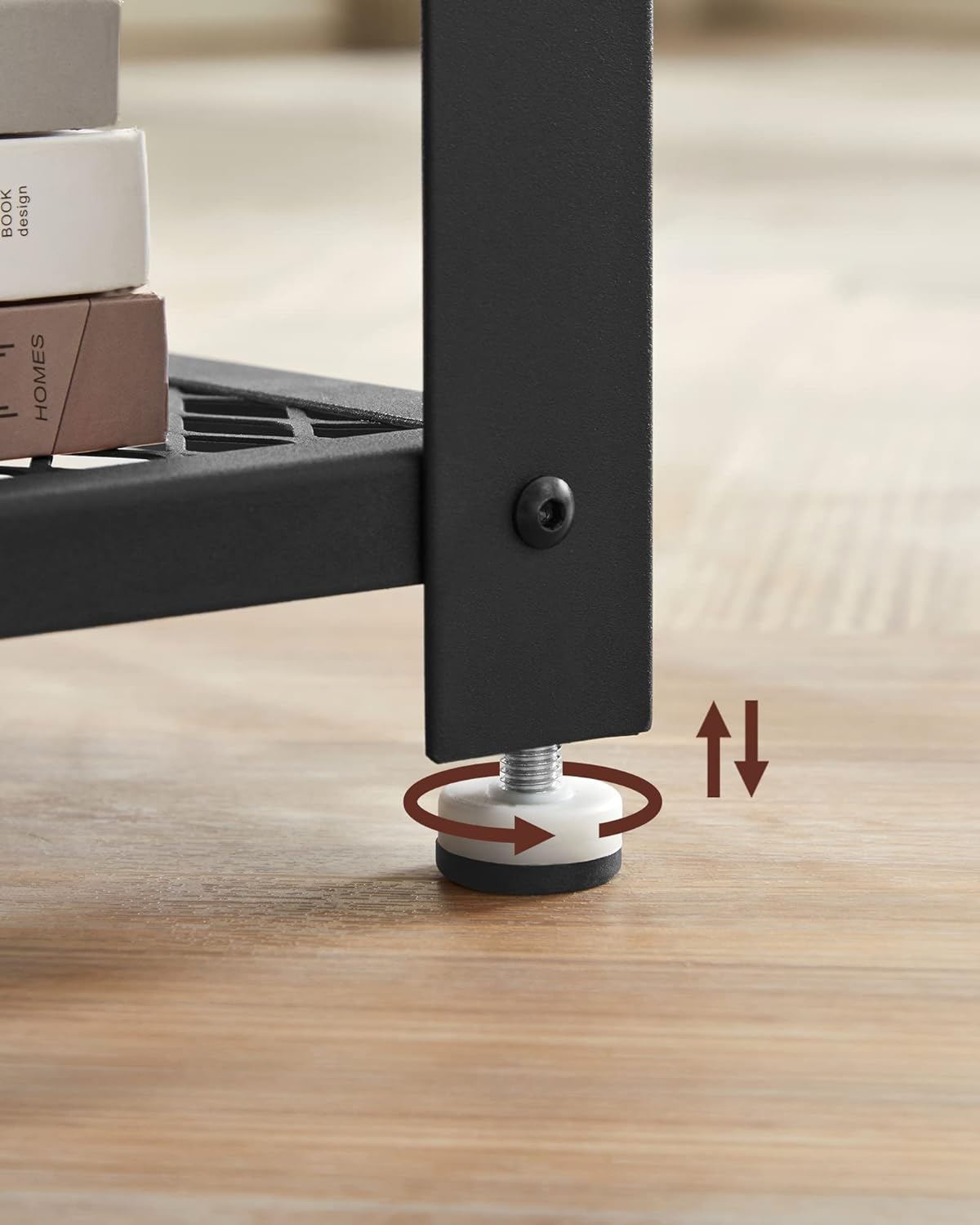 Nincs többé lötyögés: ez a dohányzóasztal állítható lábakkal van felszerelve, amelyek kiegyenlítik a padló enyhe egyenetlenségeit, és egyensúlyban tartják ezt a bútordarabot.