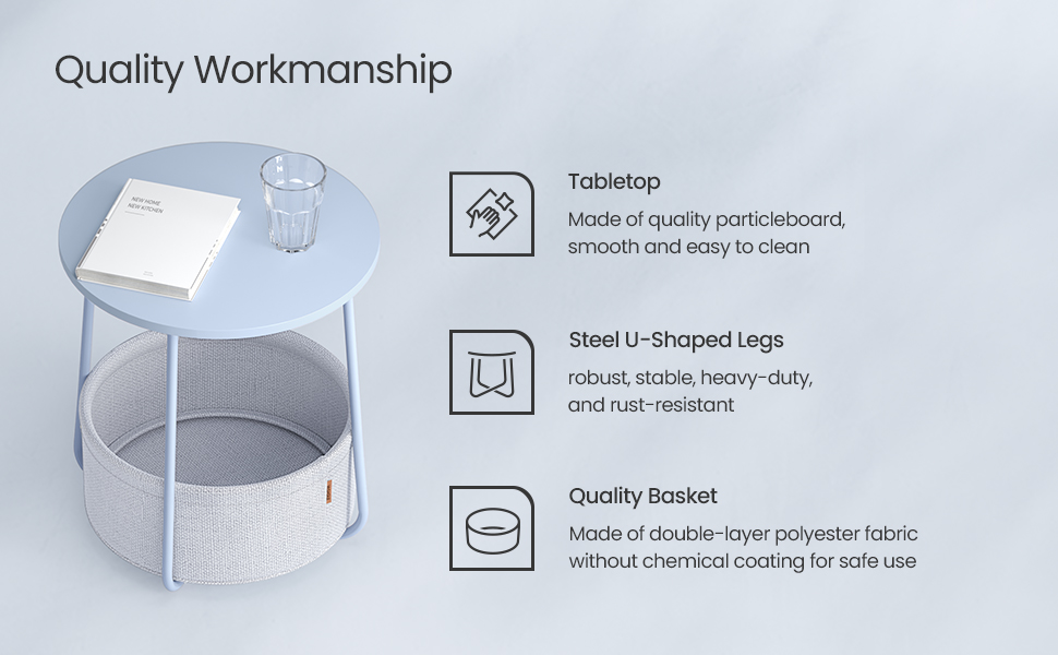Cos de inalta calitate: Cosul este fabricat din tesatura neteda din poliester cu doua straturi. Nincs kémiai rétege, és biztonságos használatot biztosít. A vászon megjelenése miatt egyedi hangulatot kölcsönöz ennek az asztalnak.