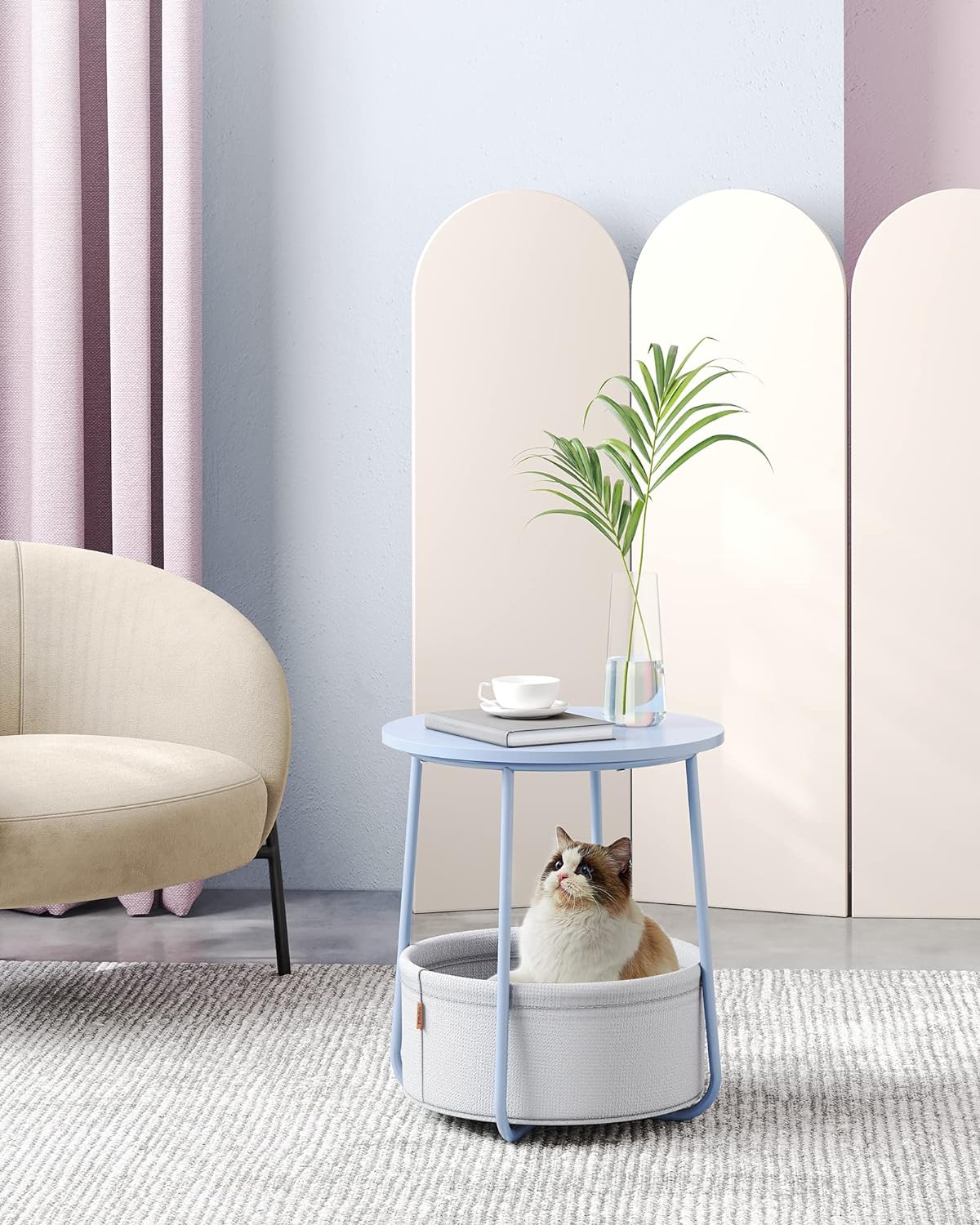 Moderna si simpla: aceasta masuta rotunda simpla adauga o nota de stil in camera de zi sau in dormitor datorita combinatiei de roz pastel si alb nor si se potriveste cu diferite stiluri de interior.
