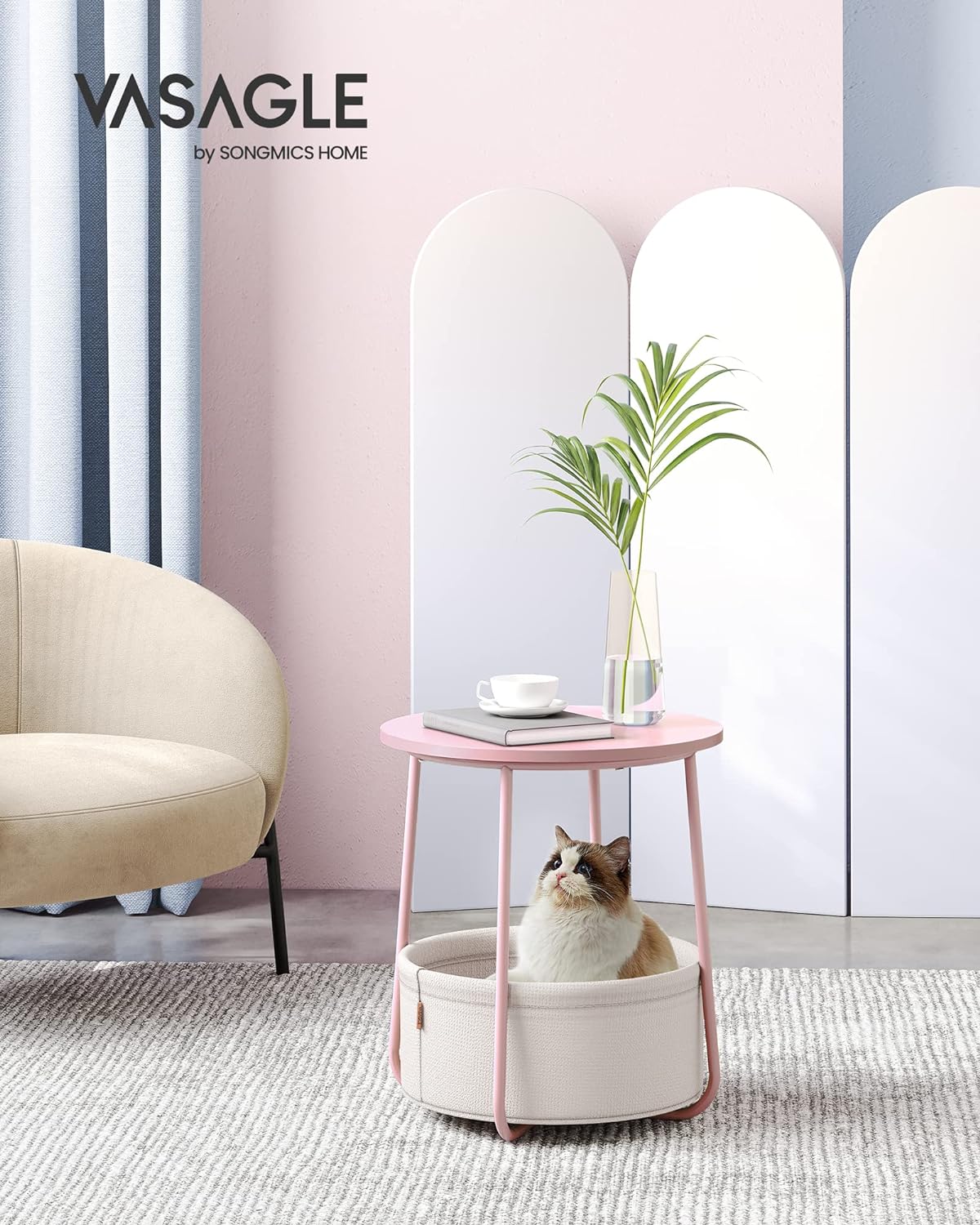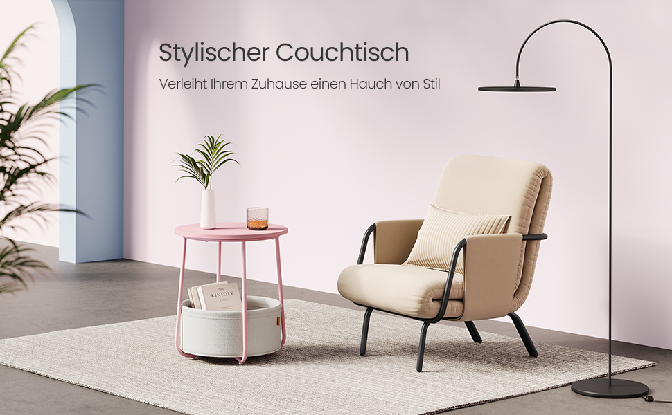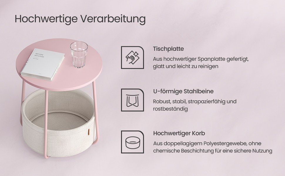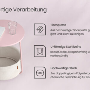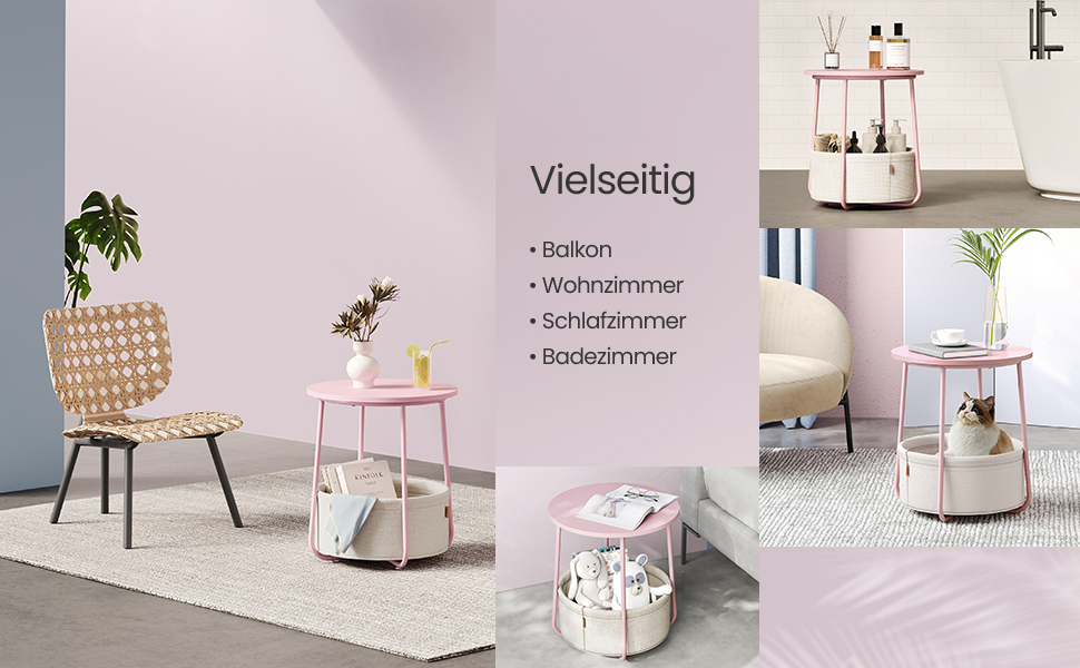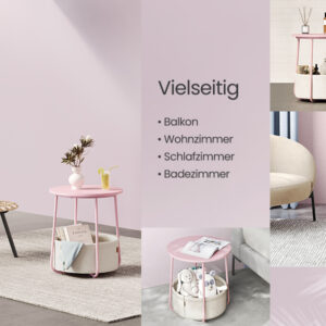 Moderna si simpla: aceasta masuta rotunda simpla adauga o nota de stil in camera de zi sau in dormitor datorita combinatiei de roz pastel si alb nor si se potriveste cu diferite stiluri de interior.