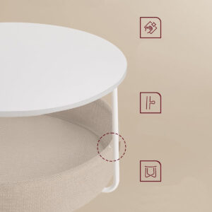 „VASAGLE Kerek dohányzóasztal szövetkosárral, modern stílusú, 45x75cm, fehér bézs színű” értékelése elsőként