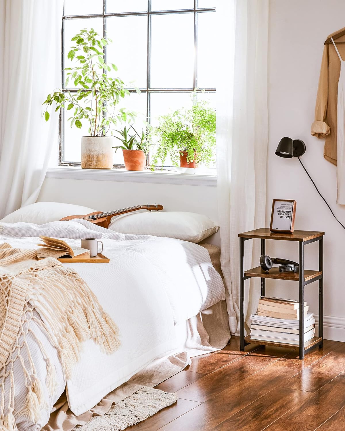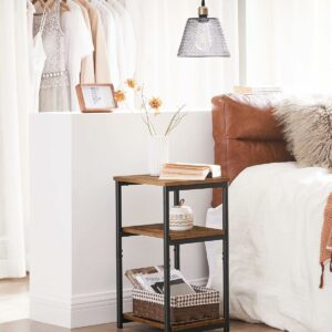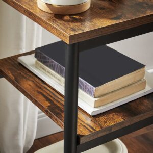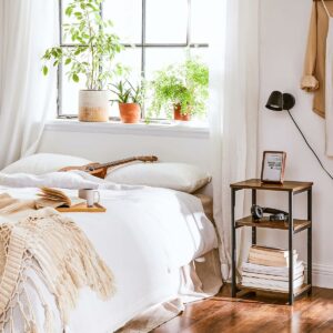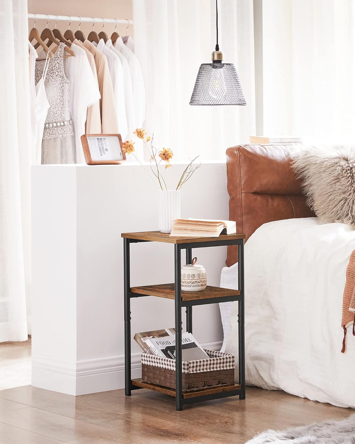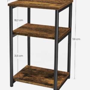 Ce primesti: O masuta laterala in stil industrial, cu 3 rafturi deschise pentru mai multe spatii de depozitare la indemana, care functioneaza atat ca masa laterala, cat si ca noptiera.
