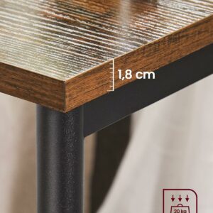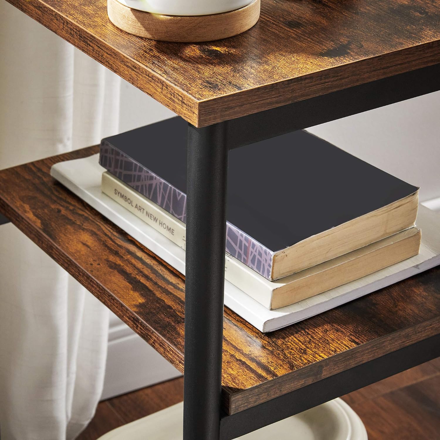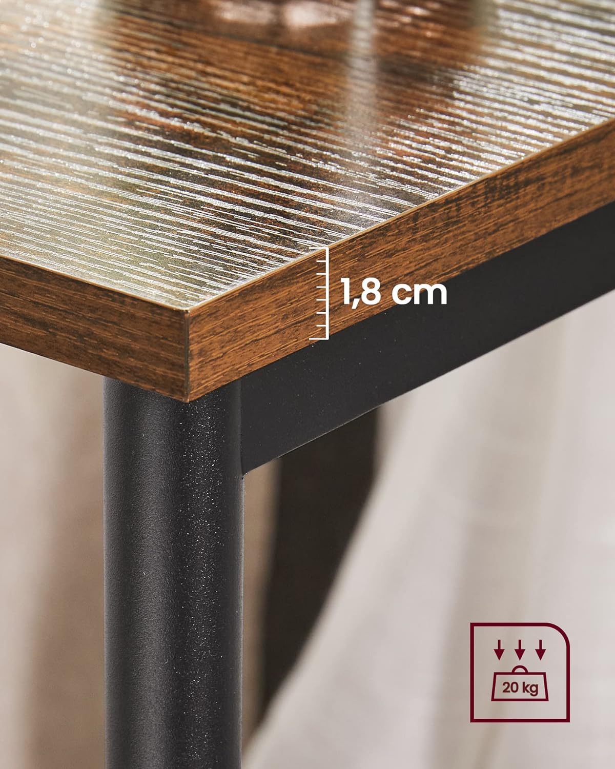 3 panouri dreptunghiulare in maro rustic sunt incadrate de picioare rotunde in negru mat si impreuna formeaza aceasta masa laterala simpla care emana un aer industrial si atrage atentia tuturor in orice incapere.