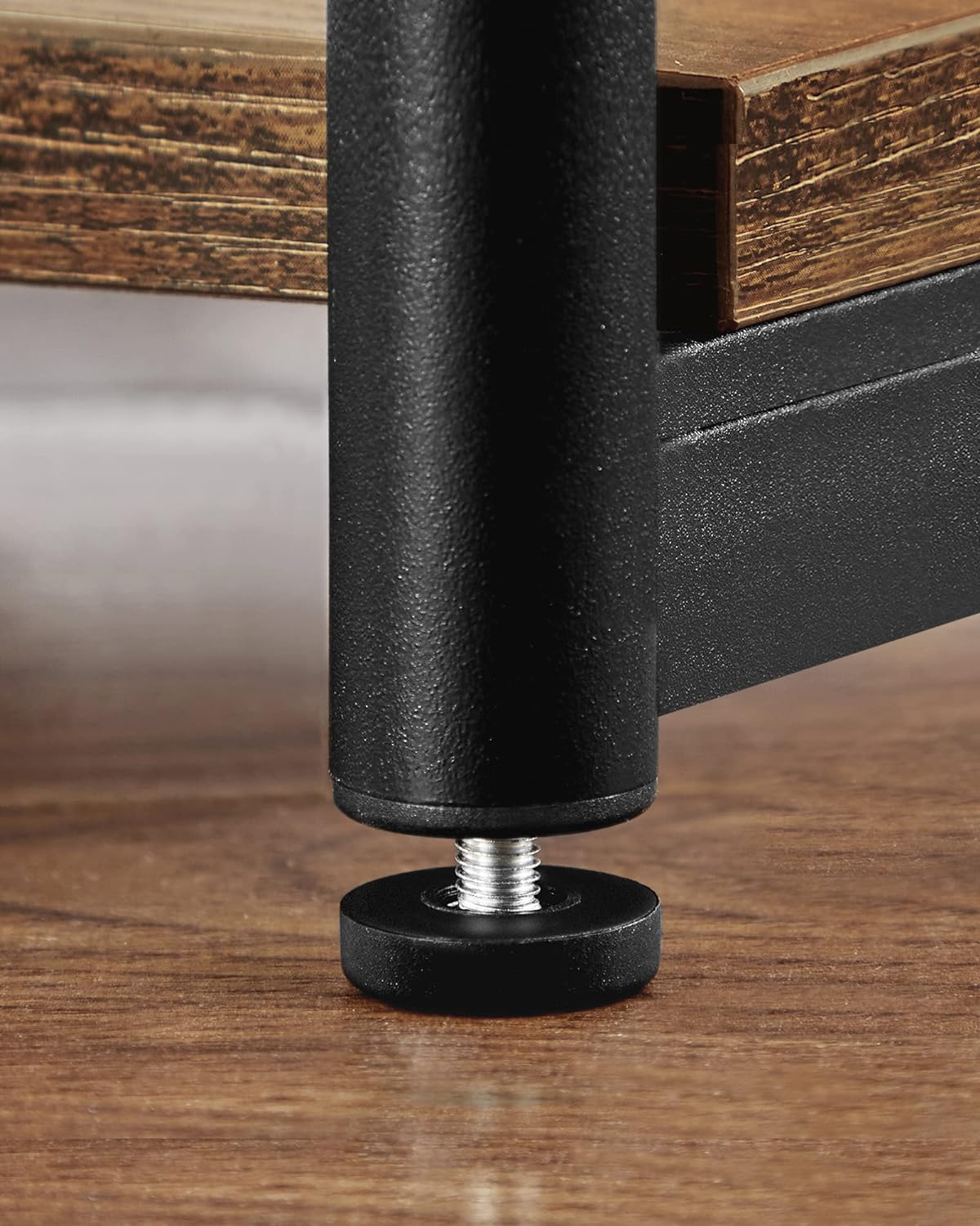 Datorita placii aglomerate sustinute de un cadru din otel, aceasta masa de canapea este solida si stabila. Fiecare nivel poate sustine pana la 20 kg. De asemenea, picioarele reglabile previn clatinarea pe podele inegale.