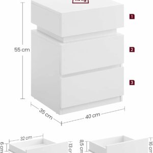 Masuta cu 3 sertare mari ofera mult spatiu de depozitare si se potriveste perfect langa patul dvs. – sertare pentru ziare si reviste, suprafata de masa pentru ceasul desteptator, rame foto etc.