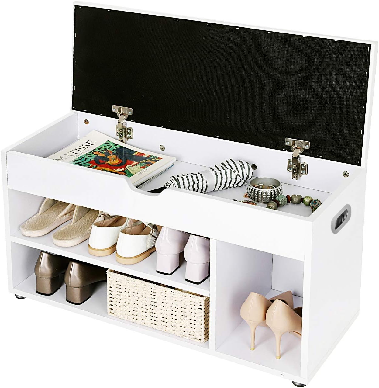 GAZDASÁGOS ÉS GYAKORLATI: Végül egy helyen tárolhatja cipőit, mert nem foglalnak helyet. A puha PU üléshuzat és a forgácslap panelek nedves ruhával tisztíthatók