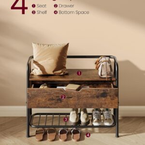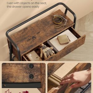 VASAGLE Cipős szekrény tárolópaddal, polccal és fiókkal, ipari stílusú, 30x80x64 cm, rusztikus barna