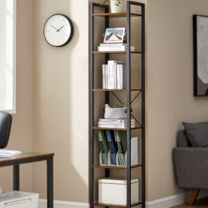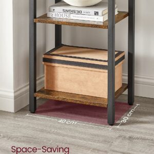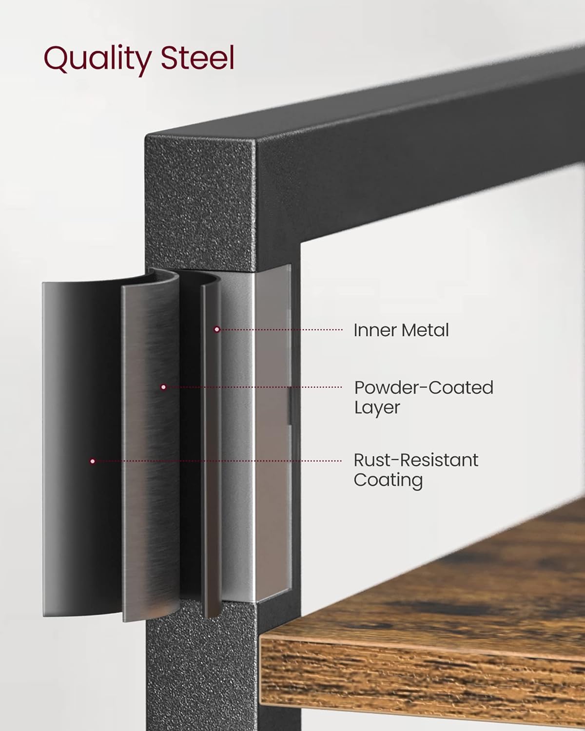 Sokoldalú felhasználás: A rusztikus barna és fekete színek, a minimalista dizájn és a karcsú sziluett olyan elegáns polcot varázsolnak, amely tökéletesen illeszkedik otthona bármely szűk helyére, legyen szó nappaliról, hálószobáról, konyháról vagy irodáról.