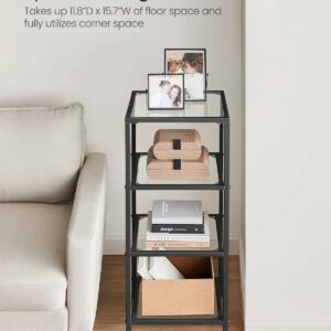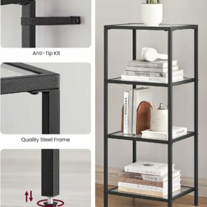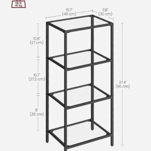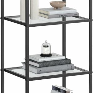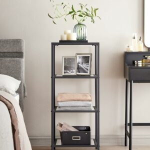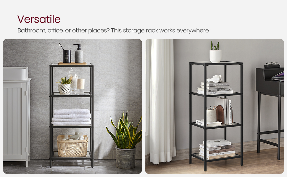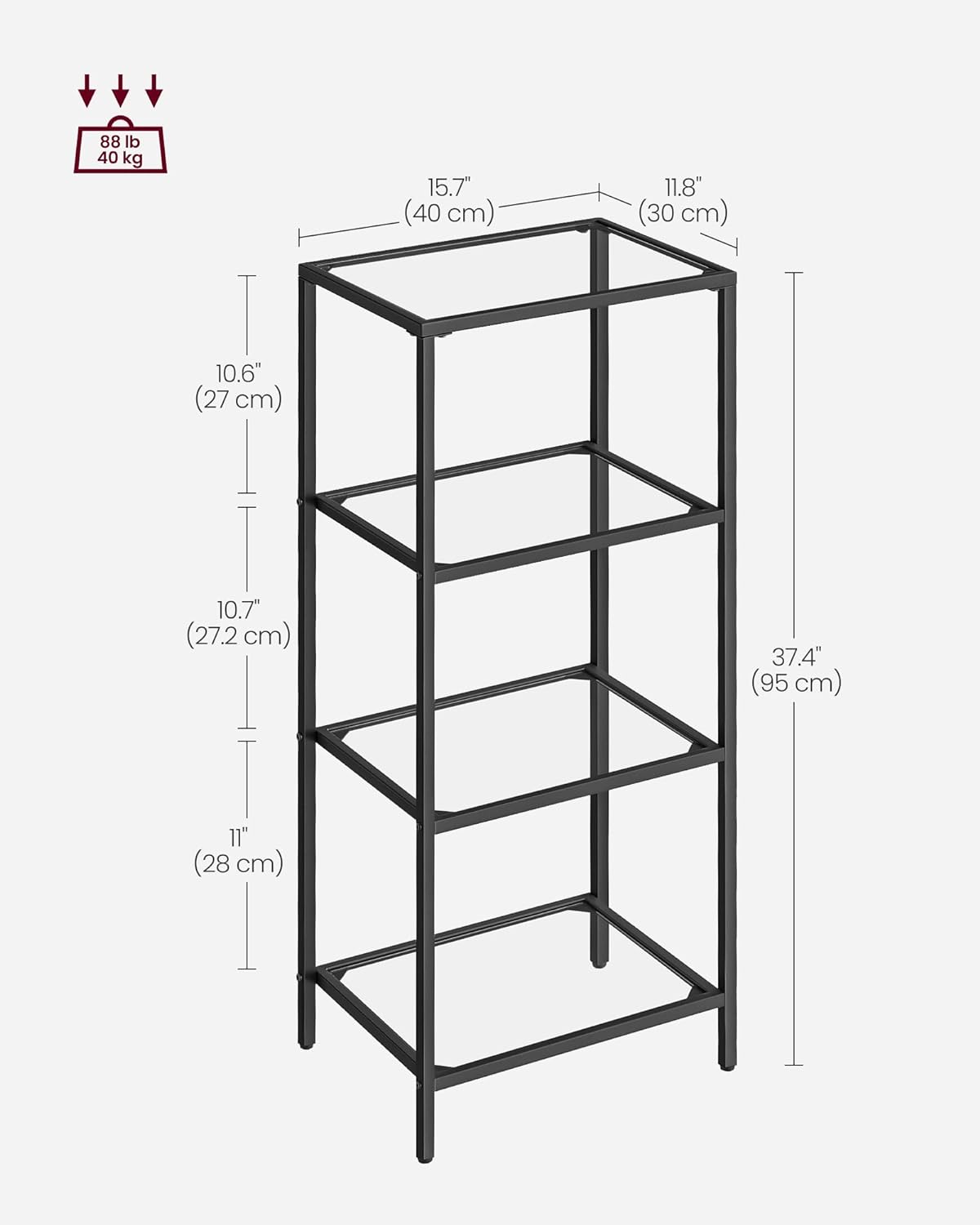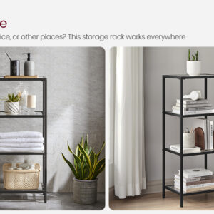 Cu rafturi din sticla transparenta si o rama neagra, acest raft cu 4 nivele se mandreste cu un model impresionant. Acest mic raft va permite sa va expuneti florile, cartile si obiectele de colectie, ridicand in acelasi timp aspectul spatiului dvs.