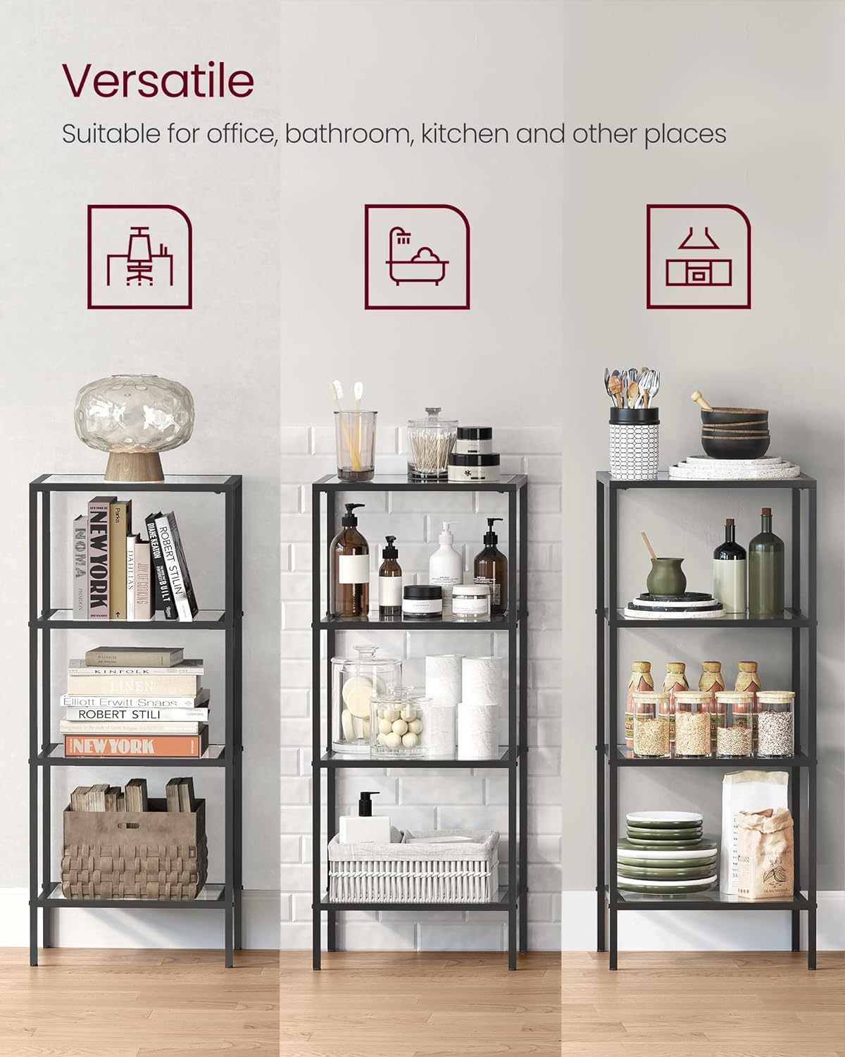 Un raft subtire pentru carti in birou? Un raft de expunere pentru bibelouri in camera de zi? Un raft deschis pentru fotografii in dormitor? Acest raft ingust cu 4 nivele va acopera toate nevoile.