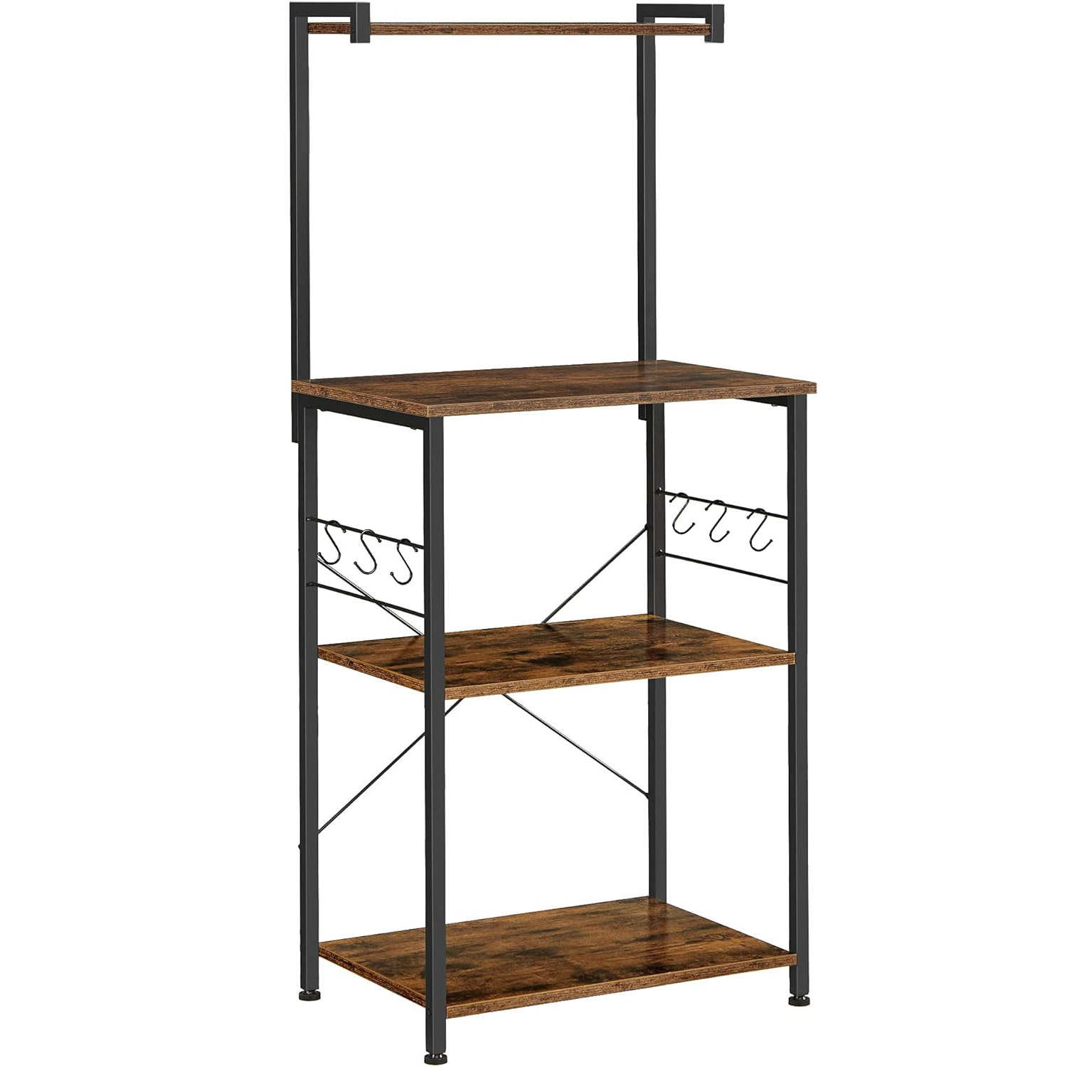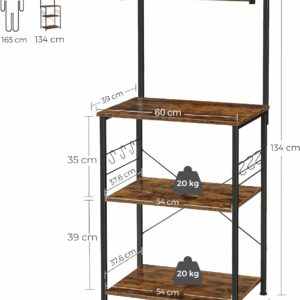 VASAGLE Konyhai polc mikrohullámú sütő hellyel, 4 polc, acél, ipari, 40x54x134cm, retro barna és fekete