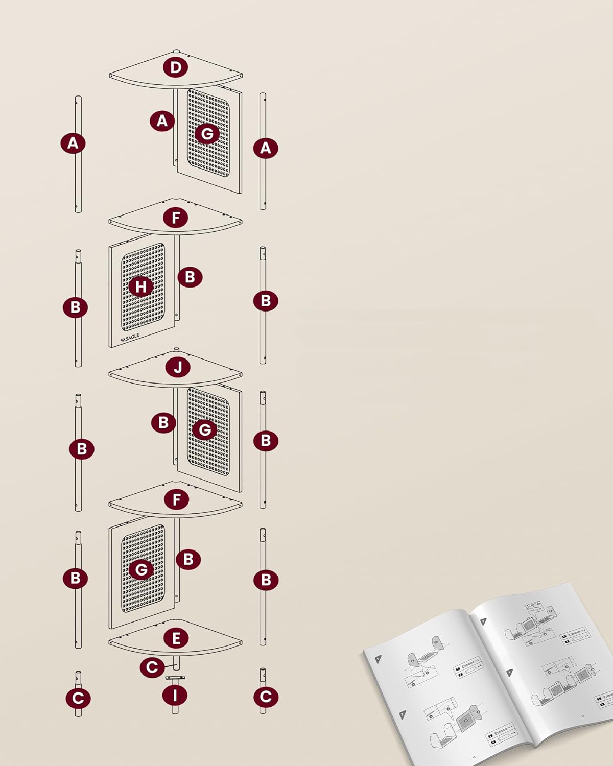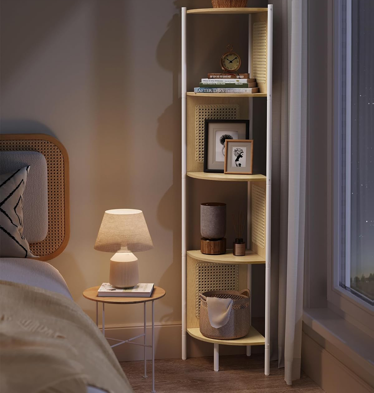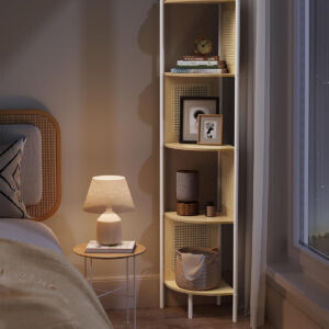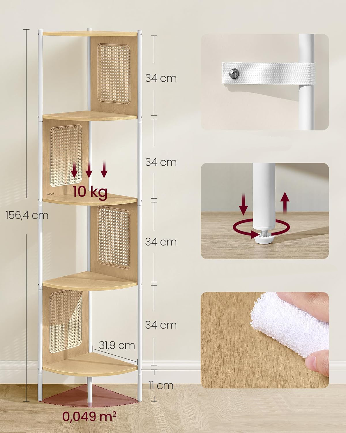 „VASAGLE Boho sarokpolc, fém keret, MDF polcok és polyrattan panelek, 32x32x156cm, bézs” értékelése elsőként