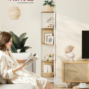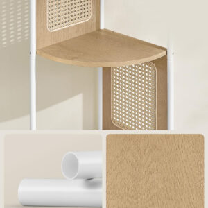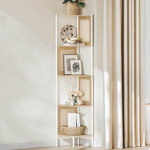 VASAGLE Boho sarokpolc, fém keret, MDF polcok és polyrattan panelek, 32x32x156cm, bézs