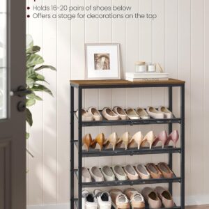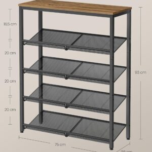 VASAGLE Cipőtartó, 5 állítható hálószint, 12-16 párnak, 75x30x93 cm, rusztikus barna