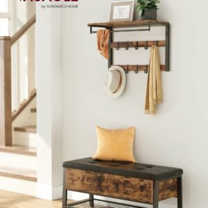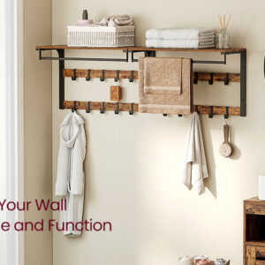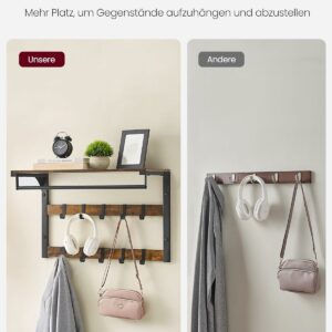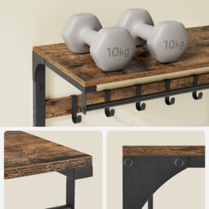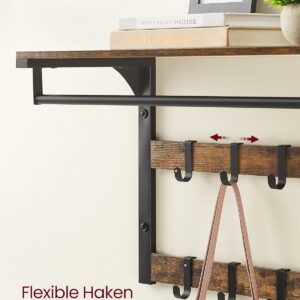 VASAGLE Akasztós típusú fali polc, 10 db kivehető kampó, ruhatartó sín, 30x65x42cm, rusztikus barna és fekete